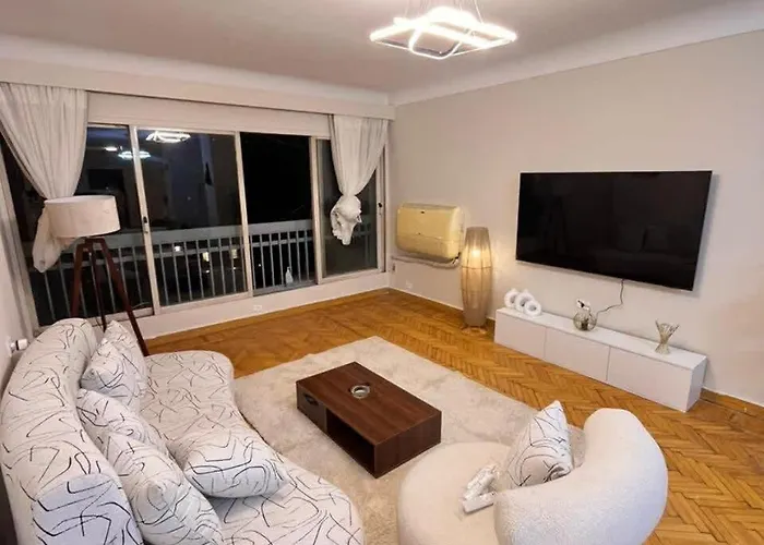 Los huéspedes pueden explorar la Mezquita de Hussein a unos 10 minutos en coche de este apartamento de 130 m², mientras que la Torre del Cairo está a unos 15 minutos en coche. Este apartamento está a 3 km del centro del Cairo.